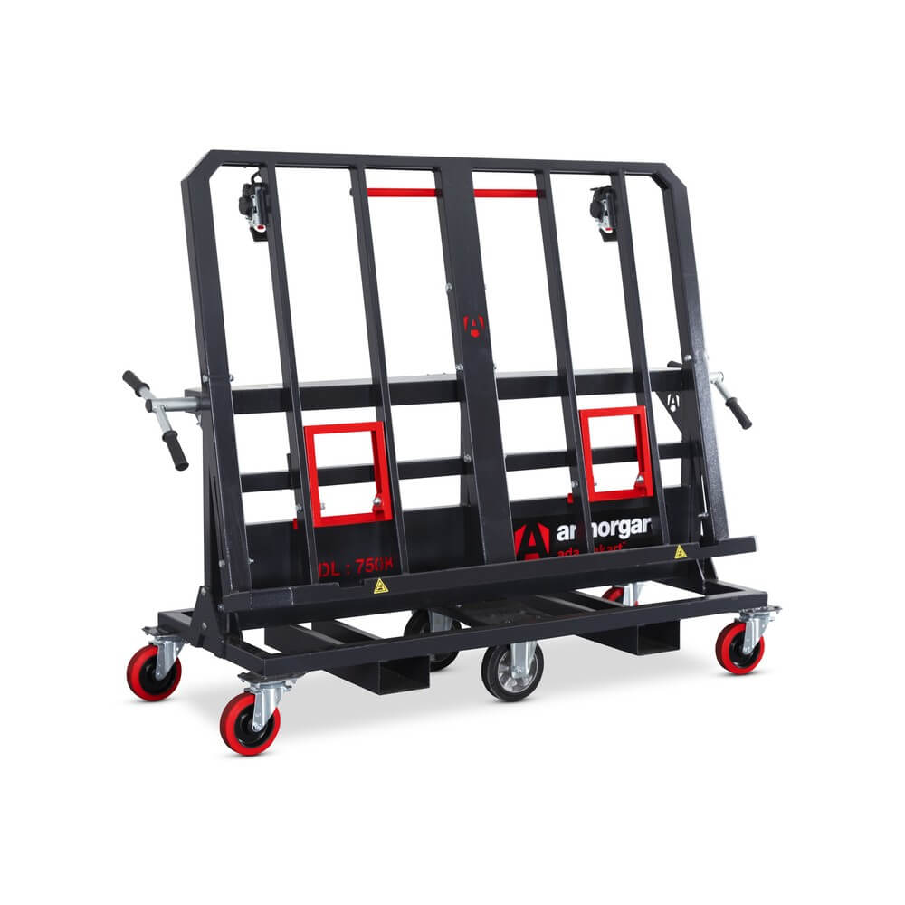 The Armorgard AdaptaKart AK750 is an adaptable board trolley designed for easier handling of plasterboard, MDF, plywood, and other large sheet materials on site. The unique pivoting rack allows boards to be transported in either a vertical or horizontal (flat) position, doubling as both a trolley and a work or cutting bench.