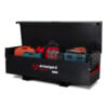 The Armorgard TuffBank TB6 is the longest box in the TuffBank range — offering nearly 1.9 metres of internal length for storing scaffold poles, spirit levels, conduit, and other long tools and materials. Built from 2mm and 5mm steel with twin keyed-alike IntaLokt 5-lever deadlocks, anti-drill plates, anti-cut deadbolts, and anti-jemmy protection, the TB6 has been independently tested and certified to Sold Secure Bronze, Secured by Design, and Security Cabinets Silver standards. Fitted with 450N gas struts for the heavier lid and forklift pockets for easy repositioning. Suitable for both vehicle mounting and on-site use.