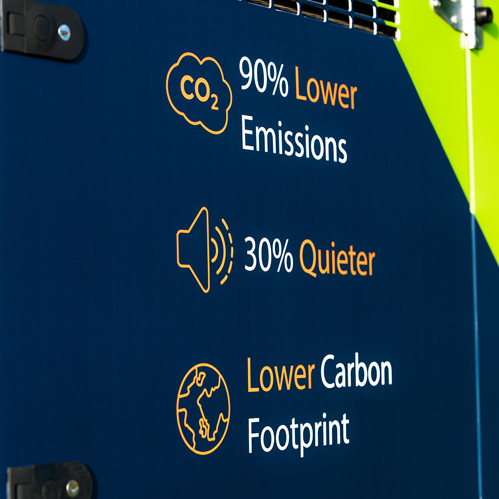 Our LPG (Liquid Petroleum Gas) generator, provides a practical and sustainable power source for your construction projects, allowing you to meet your immediate power needs while also contributing to a greener future. Offering a wide range of benefits that make them a superior power source. With 90% less emissions compared to diesel engines, our LPG generators are environmentally friendly and sustainable, helping to reduce all the harmful pollutants from that of diesel equivalent.