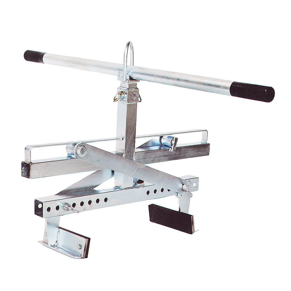Mechanical kerb lifter designed for the safe transportation and precise placement of kerbs, steps, edging angles and similar concrete elements. Suitable for both crane lifting and manual handling, with adjustable jaws and rubber-lined grippers for secure operation.